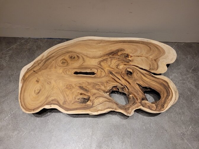 De boomstamtafel is gemaakt van een massieve boomstam van de Suar. Suarhout boomstamtafelblad is een prachtig natuurproduct. Het is warm gekleurd hout met mooie tekeningen. Dit relatief snelgroeiende hardhout kenmerkt zich door zijn compacte nerf en prachtige kleurschakeringen. Elke boom en daarmee elke tafel is anders en dus uniek, haal de natuur in huis!