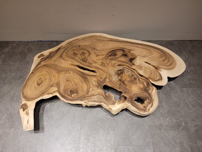 De boomstamtafel is gemaakt van een massieve boomstam van de Suar. Suarhout boomstamtafelblad is een prachtig natuurproduct. Het is warm gekleurd hout met mooie tekeningen. Dit relatief snelgroeiende hardhout kenmerkt zich door zijn compacte nerf en prachtige kleurschakeringen. Elke boom en daarmee elke tafel is anders en dus uniek, haal de natuur in huis!