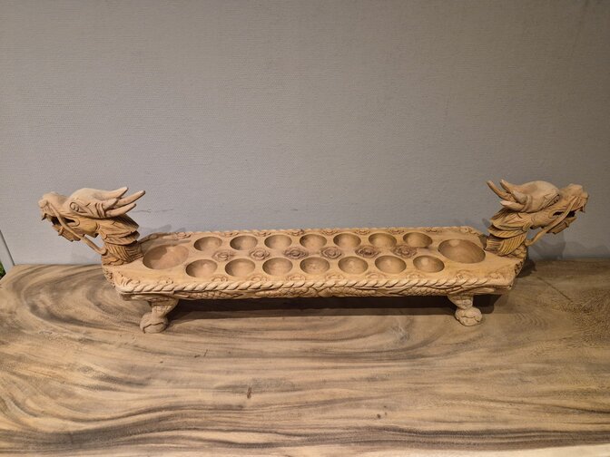 Het congklakbord is zorgvuldig vormgegeven en biedt een prettige speelervaring dankzij de overzichtelijke kuiltjes en comfortabele speelindeling. Perfect voor gezellige spelmomenten met familie of vrienden, maar ook een mooi decoratief object wanneer het niet wordt gebruikt.