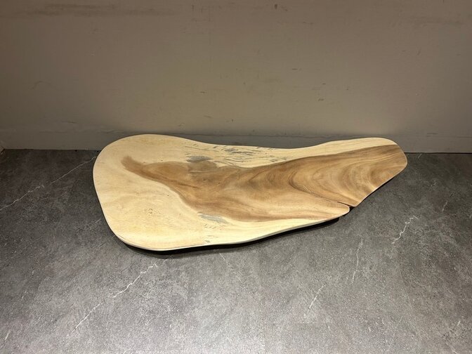 Dit salontafelblad is een prachtig natuurproduct. Het is warm gekleurd hout met mooie tekeningen. Dit relatief snelgroeiende hardhout kenmerkt zich door zijn compacte nerf en prachtige kleurschakeringen. Elke boom en daarmee elke tafel is anders en dus uniek, haal de natuur in huis!