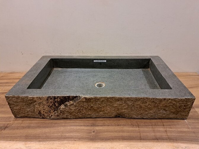 Elke natuurstenen wasbak heeft zijn eigen uitstraling en karakter door een uniek gevormde structuur, kleur en afmeting. De binnenkant is glad gepolijst.