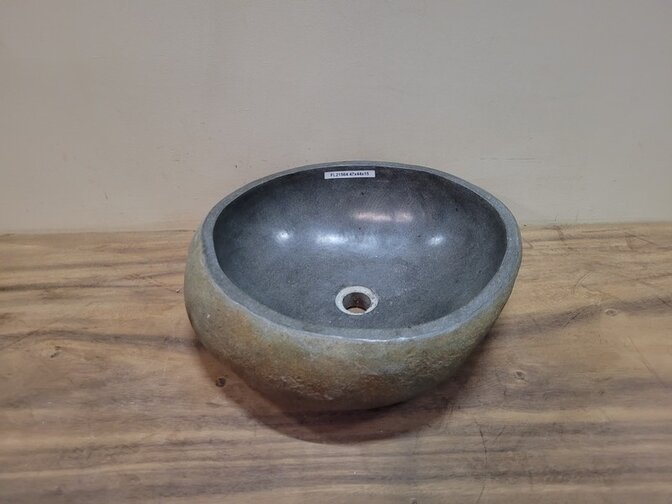 Al onze waskommen van natuursteen worden gemaakt van rivierstenen uit Indonesië, deze bestaan uit een soort graniet of basalt. Door de buitenkant onbewerkt te laten is iedere waskom uniek.